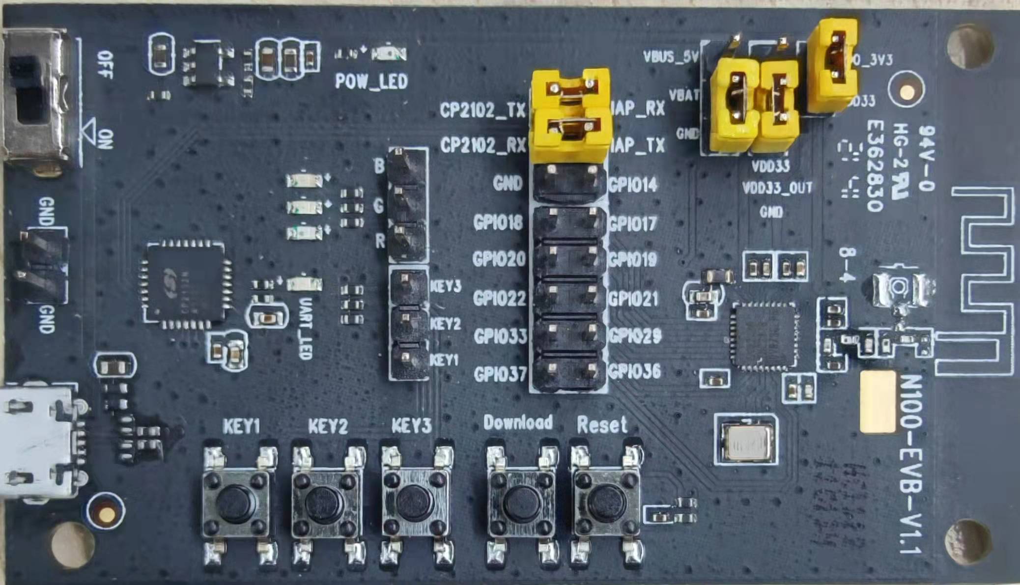 ![]() N100 | SV32WB01 | Micro USB 5V | UART(板載串口芯片) | 3 | RGB各一顆 | 13 (3.3V電平) | 板載PCB天線 |